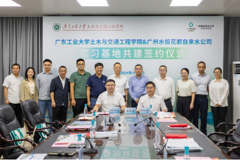 签约仪式上,在学院党委书记周建强、花都自来水有限公司党委书记杨熙及双方教(职)工代表的共同见证下,学院院长赵志伟教授和花都自来水公司副经理李秋分别代表学院和企业,共同签署了广东工业大学校外实习基地建设协议书。