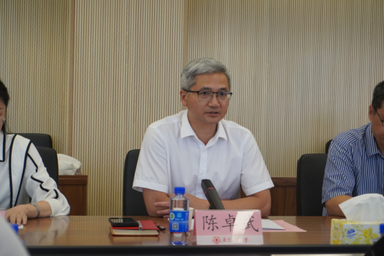 陈卓武为本次聘任仪式致辞,他代表学校向廖平元校友表示热烈的祝贺与衷心的感谢。陈卓武强调:廖平元校友一如既往地关心支持母校的建设,今天他欣然应邀担任客座教授,为母校贡献校友智慧和力量,让学校师生深受感动。近年来,学校既面临学科专业调整、人才培养模式变化、教学评估、创新创业的挑战期,更深度介入粤港澳大湾区建设的时代洪流,希望廖平元校友继续支持学校高等教育事业发展,为培养大国工匠注入企业动力,为广东高质量发展贡献校企力量。