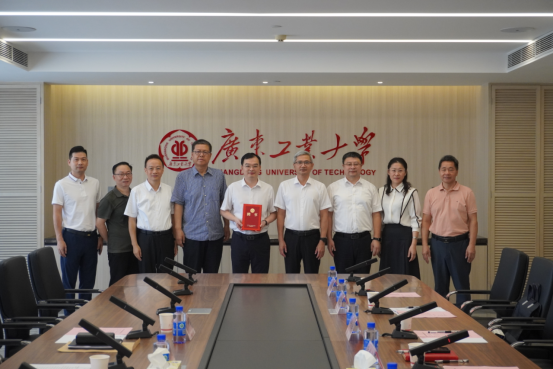 随后,陈卓武向廖平元校友颁发客座教授聘书,并合影留念。