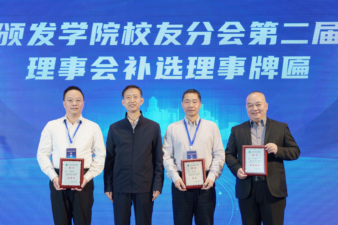 图 陈良友副书记为学院校友分会新任会长、秘书长、轮值会长颁发牌匾