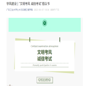 二、加强考风考纪宣传。为深化学生诚实考试意识,避免学生触碰纪律红线,我院充分重视学生诚信价值观养成,逐级通报考试作弊案例,形成辅导员-监考老师-教务老师协同宣传考风考纪机制,提高巡考员巡查力度,并通过电子显示屏、微信公众号等可视化媒介发布诚实备考标语及倡议书,强化学生自律意识,引导学生端正学习态度,培养学生诚实守信的良好品德。