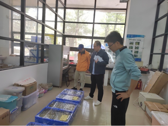 在结构工程实验室,杜星检查了高空的桥式起重机和耐久性干湿循环实验台相关特种设备的运营维护和管理情况;在建筑材料实验室,检查了搅拌机等设备运行维护情况;在岩土工程实验室,检查了实验室的装修和运行情况;在给排水实验室,检查了药品管理和实验室新建通风系统情况。