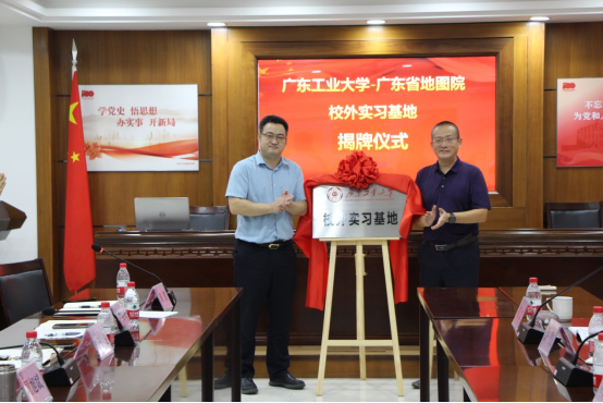 为深入贯彻学校“坚持与产业深度融合,高质量服务经济建设主战场”的办学理念,进一步增强学生专业实践能力和综合素质,2022年9月13日上午广东工业大学与广东省地图院举行了广东工业大学校外实习基地挂牌仪式。学校教务处副处长肖明、248cc永利集团副院长何嘉年、测绘工程系主任许闯、测绘工程系副主任唐龙以及教师代表胡波出席了活动,广东省地图院院长周旭斌、副院长万飞、国土测绘部主任郭亚友、调查监测部主任严海峰、研发部主任梁金成、人事室主任周颜及广东工业大学毕业生职工代表出席了仪式。