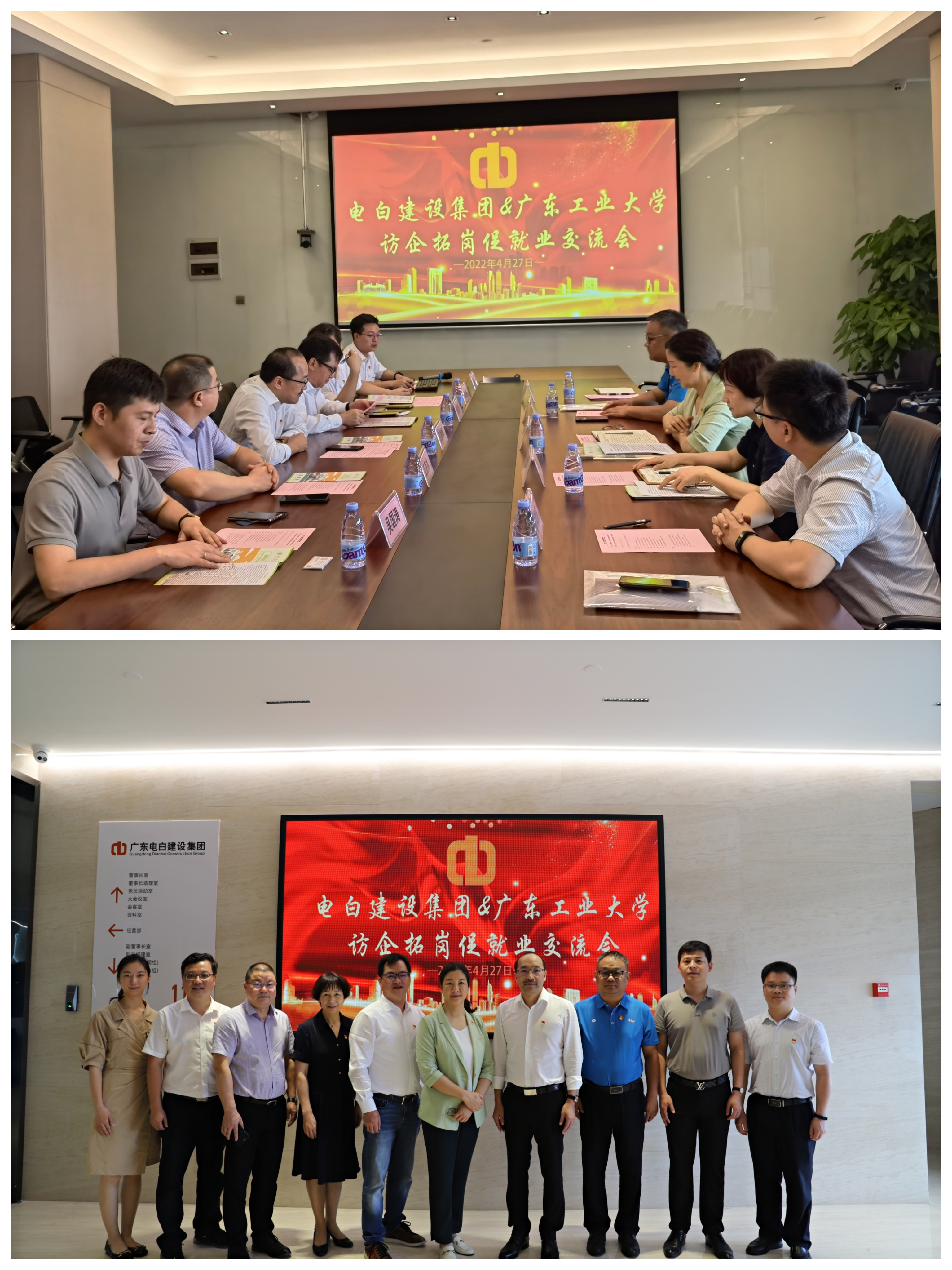 上午,调研队一行来到广东电白建设集团有限公司,与公司党委书记、董事长汪湘辉,副董事长、校友廖国维等负责人展开交流座谈。汪湘辉详细介绍了集团的发展历程,他强调,作为民营企业全国500强,集团一直秉承“人才兴企、人才强企,人才是企业核心竞争力”的理念,近三年来,企业每年的产值超过200亿人民币,企业快速发展过程中急需土建类各专业的技术人才,公司对广东工业大学的毕业生尤为青睐。朱蔚蔚书记从学校的教学科研、学科竞赛、“1+2+3”的攀撑计划、用人单位评价等方面介绍了学校近年来人才培养和发展情况,向企业大力推介我校毕业生,期待从人才的精准培养和服务社会出发,加强与企业的深度合作,促进毕业生高质量就业,实现校、企、生“多赢”。邓俊、刘锋随后介绍了学院的专业设置和毕业生情况,校企双方就建立校企人才培养,招聘就业的长期合作达成共识,并就尽快组织落实近期到校招聘进行了具体研讨。