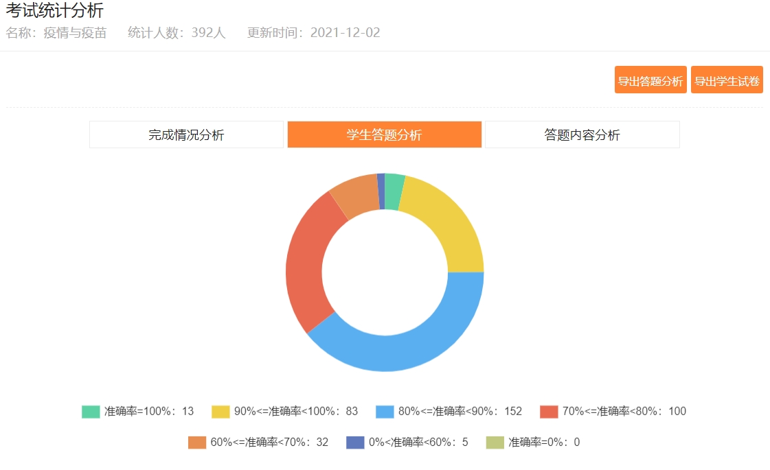 通过进行“疫情与疫苗”主题板块答题,加强了同学们的疫情防控意识丰富了同学们的疫情防控知识,有利于我校更好地进行新型冠状病毒感染的肺炎疫情防控工作。