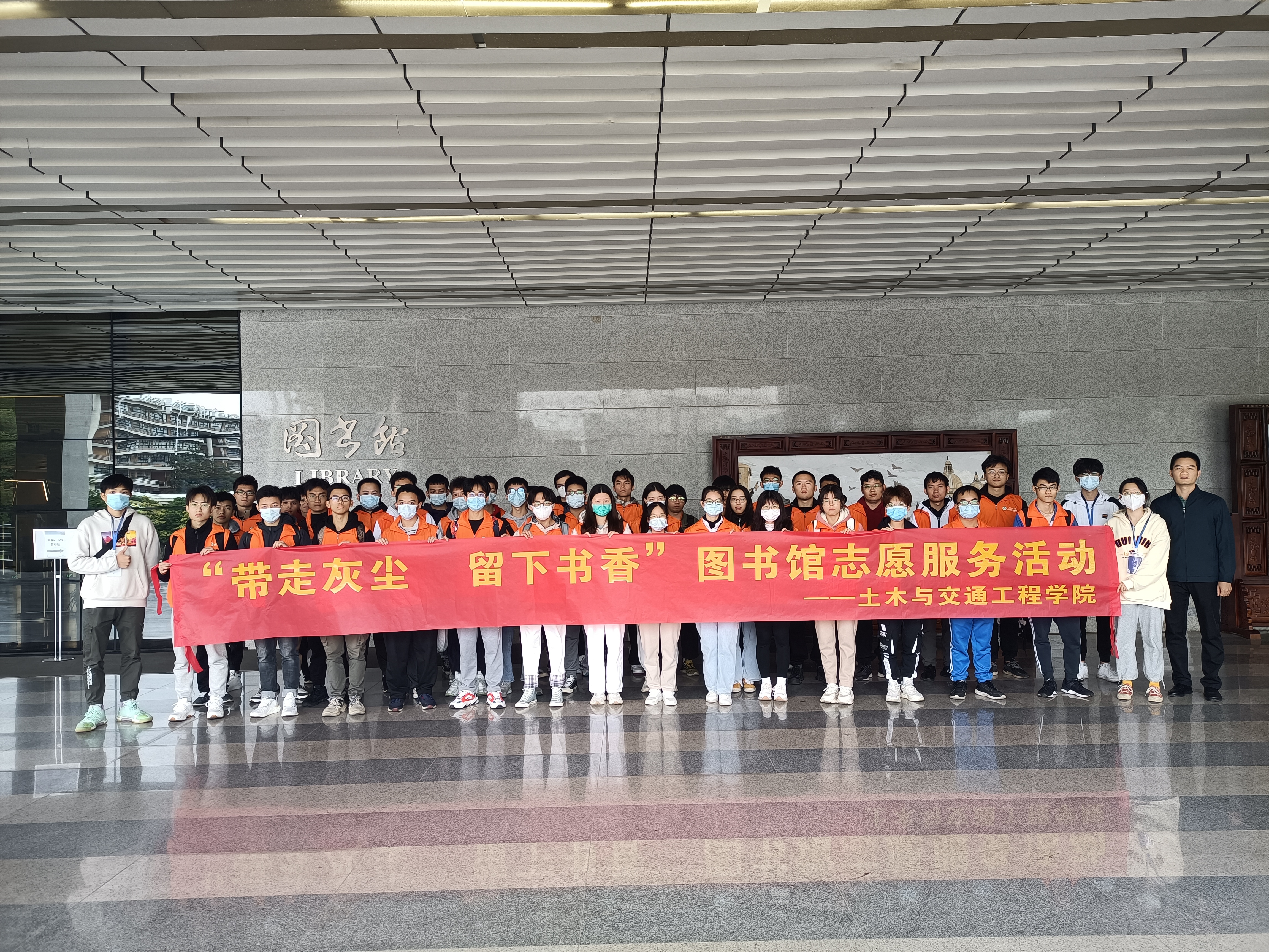 学史力行,以行践知。为进一步在学生中推进党史学习教育,响应习近平总书记“雷锋精神,人人可学;奉献爱心,处处可为”的号召,切实为师生办实事、做好事,我院团委在图书馆师生的支持下,于近期正式启动“带走灰尘,留下书香”主题志愿服务项目。11月24日,我院土木工程第二党支部、城地测绘本科生党支部40余名学生党员和入党积极分子,走进大学城校区图书馆开展志愿服务。