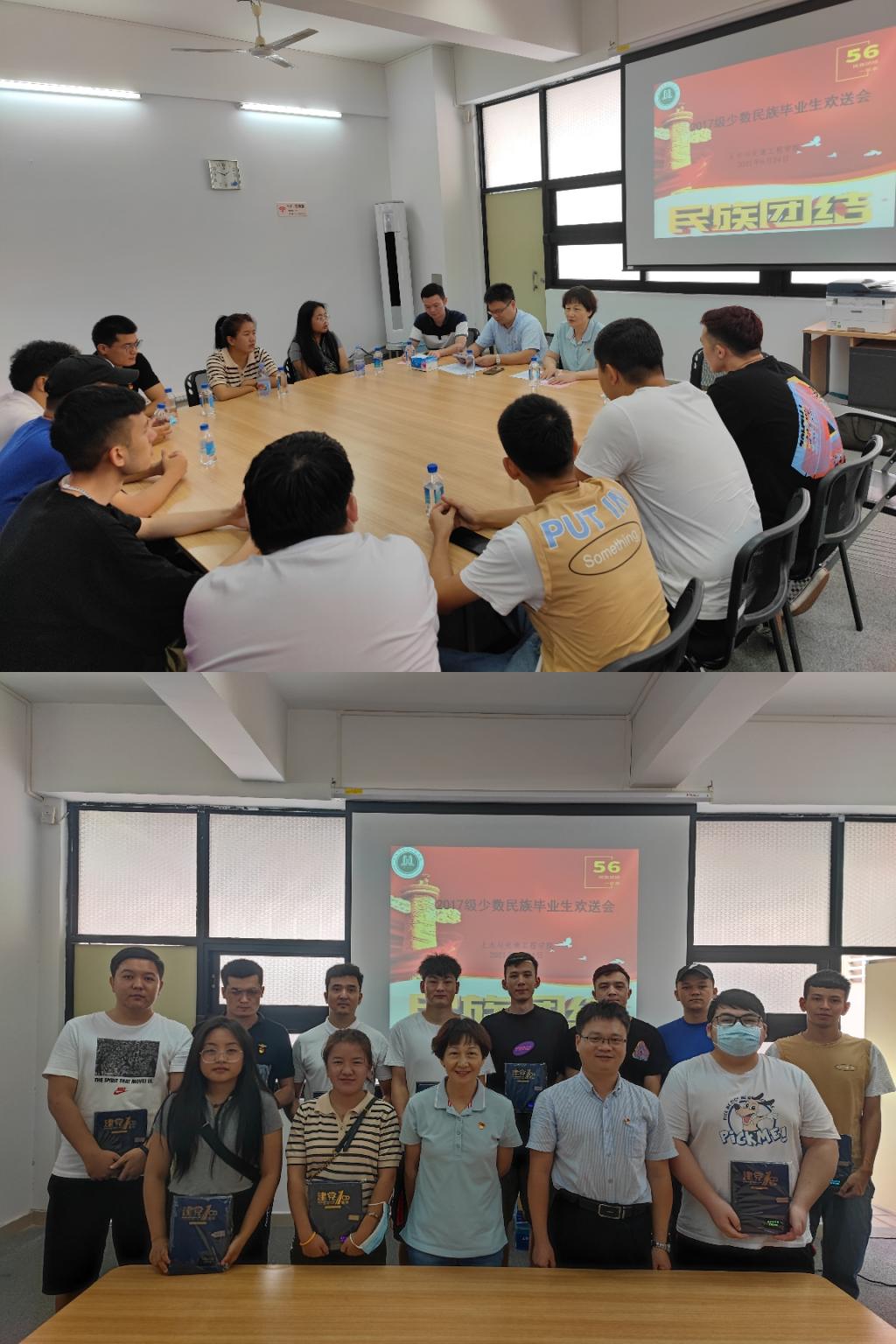 为赓续工大精神血脉,进一步增进少数民族毕业生与学院师生的情谊,促进民族团结进步,6月24日下午,我院在实验2号楼515党建活动室,举行了2017级少数民族毕业生欢送会,学院党委书记邓俊、副书记陈颂坚和2017级辅导员参加会议。