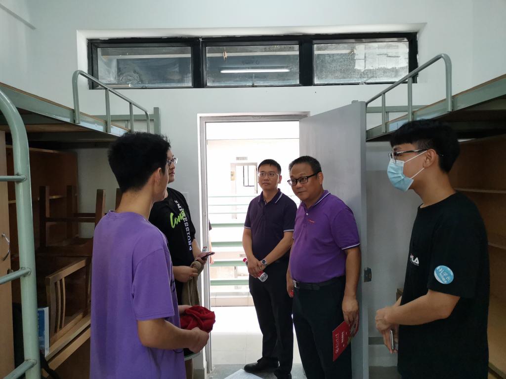 9月12日,校长邱学青、副校长陈卓武、学院党委书记张育广、院长刘锋、副书记陈颂坚、副院长王志红、副院长何嘉年及新生辅导员老师先后深入我院迎新志愿服务点和2020级本科生、研究生宿舍看望慰问新生,给新同学送去温暖和关心。