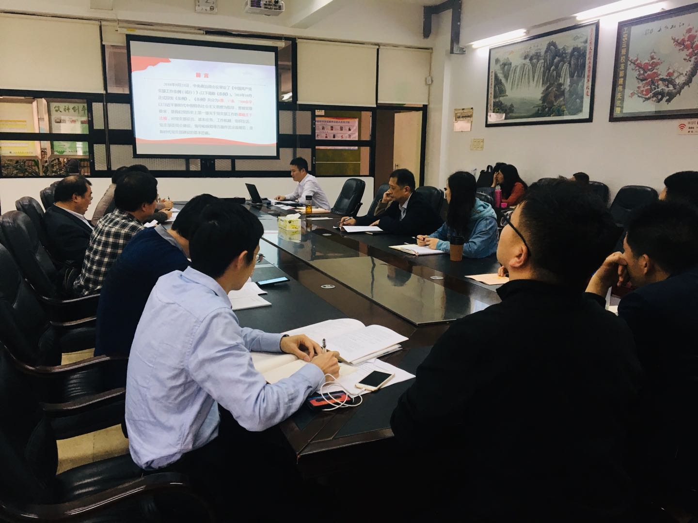 3月26日下午,我院召开党委理论学习中心组(扩大)会议,专题学习《中国共产党支部工作条例(试行)》,学院党委理论学习中心组成员、全体党支部书记参加了本次会议,会议由学院党委张育广书记主持。