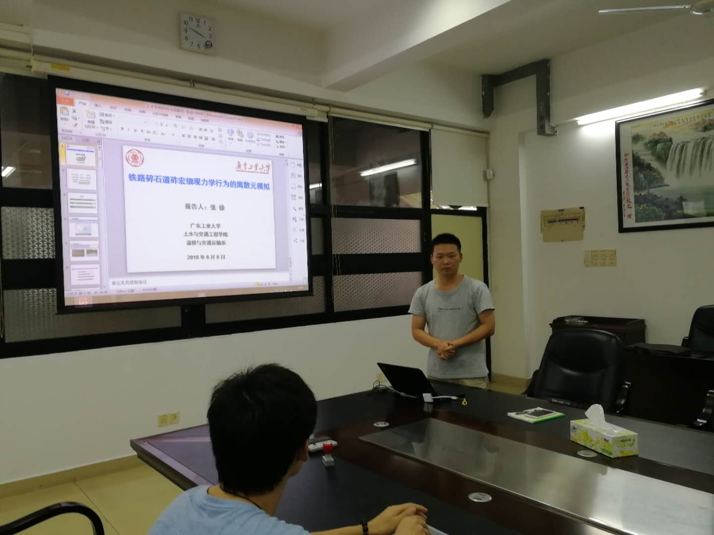 为提升我院学术气氛,促进教师间的科研思想交流,提高我院科研水平,2018年6月8日下午,学院第23期科技交流系列讲座在实验二号楼502会议室举行。本期讲座邀请我院道桥与交通运输系教师张徐博士为大家做了“铁路碎石道砟宏细观力学行为的离散元模拟”的学术报告。我院邹超老师及部分研究生参加了讲座和讨论。