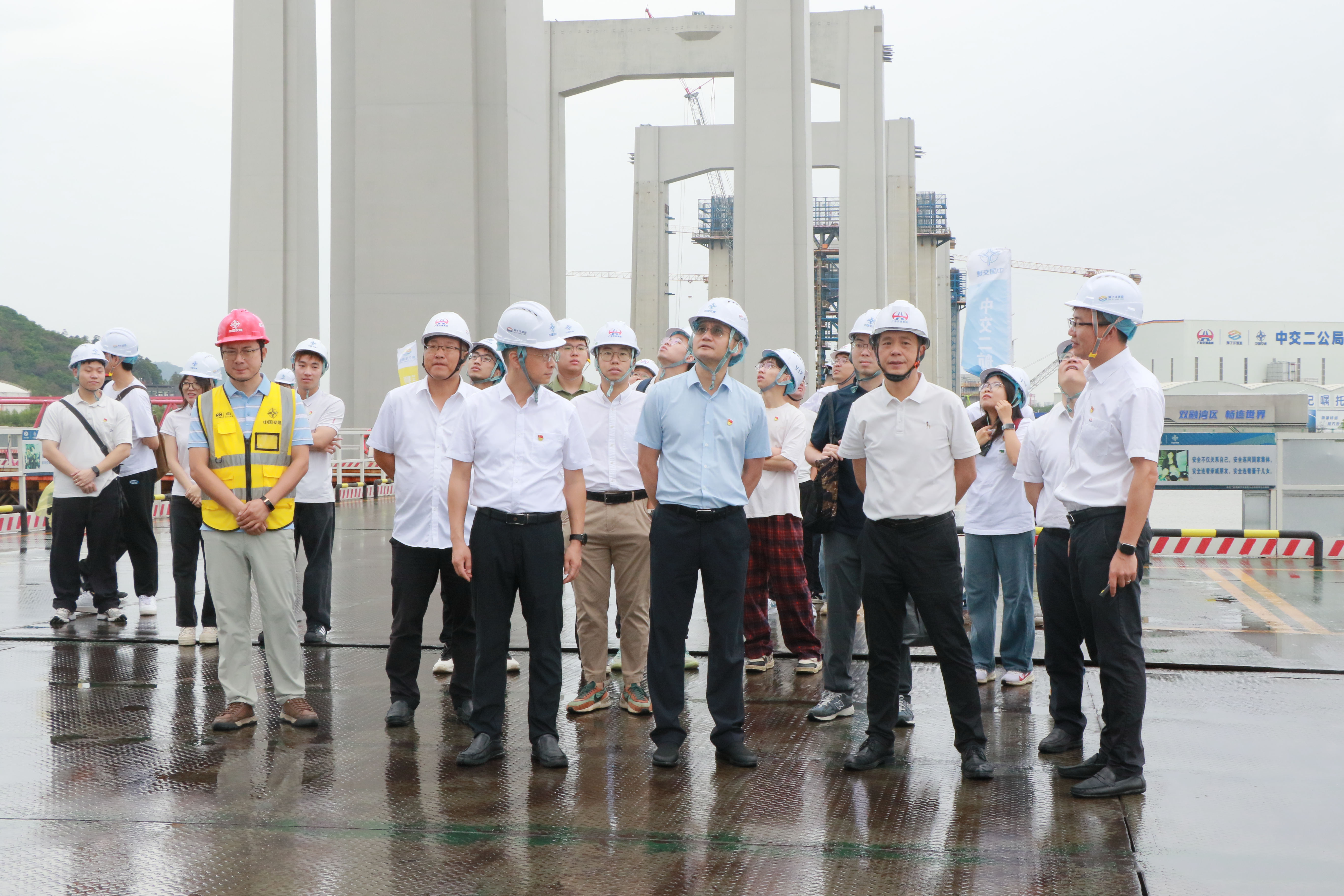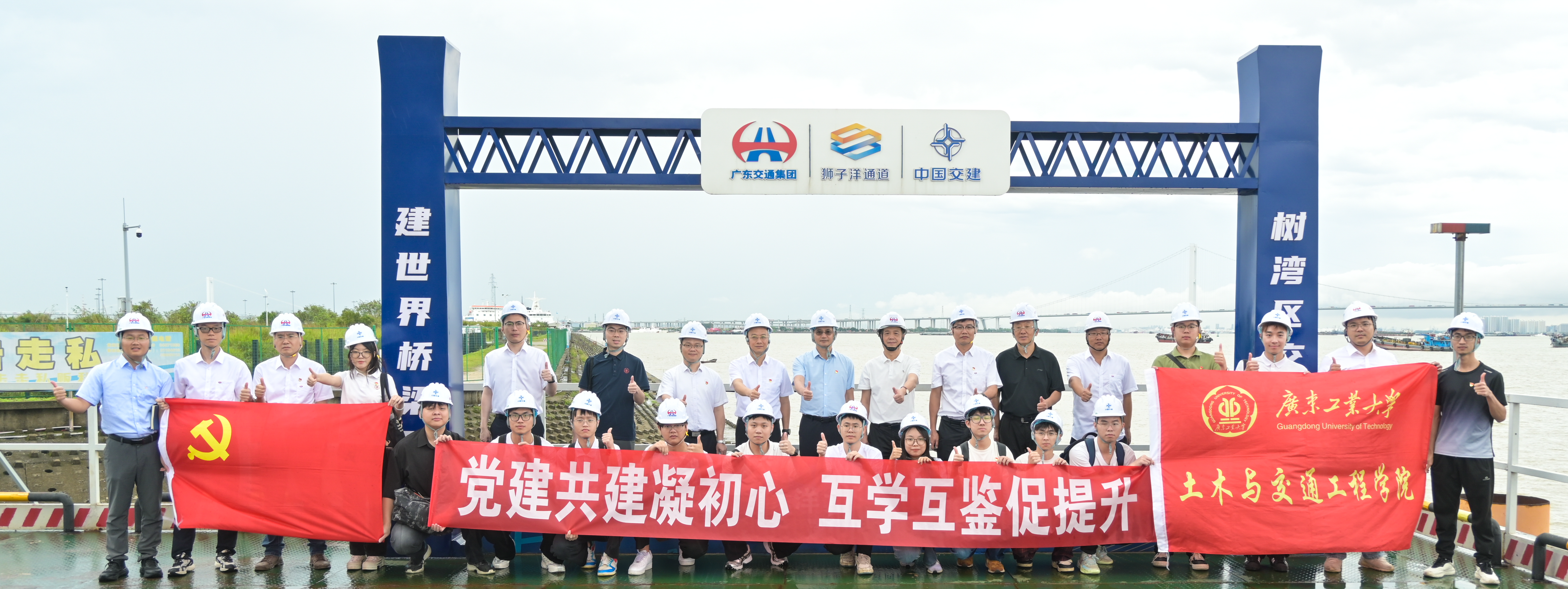 5月9日上午,学校党委副书记陈卓武带领248cc永利集团20余名师生党员代表,赴广东省交通集团所属狮子洋通道项目部开展"清风铸党魂,共建促发展"校企党建共建暨访企拓岗促就业活动。248cc永利集团党委书记周建强、副书记陈颂坚、辅导员梁伟源、王梓茜、唐熙、结构工程专硕研究生第一党支部、道路桥梁本科生党支部学生党员代表等参加活动。