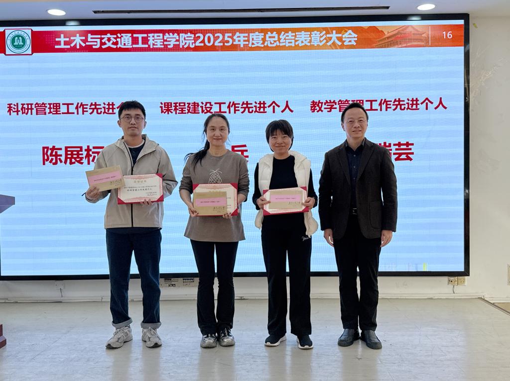 最后,周建强向获奖集体与个人表示热烈祝贺,并强调学院2025年各项事业的稳步发展、各项成果的落地见效,均离不开每位教职工的辛勤付出与无私奉献。他针对学院寒假及春节期间相关工作进行了部署:一要推进博士点、国基申报等重点工作,并注意规范使用科研经费;二要做好假期的安全工作,排查实验室、办公室各类安全隐患,提高师生防范意识,保障人身财产安全;三要着力促进学生就业,全员协同发力;四要密切关注学生动态,强化管理服务。