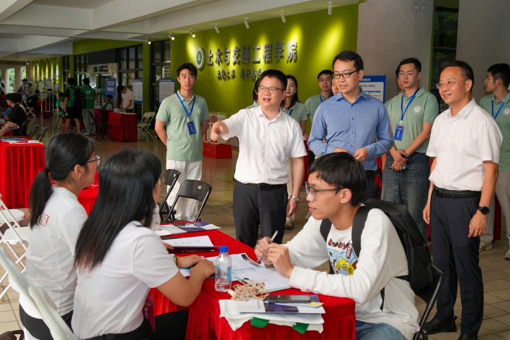 活动期间,学校党委学生工作部部长许泽浩、副部长兼学生就业指导中心主任邓庆华、保卫处副处长黄健徐、学院党委书记周建强、副书记陈颂坚亲临现场,深入了解用人单位招聘需求与毕业生求职情况,鼓励同学们将个人成长融入国家建设和湾区发展大局。